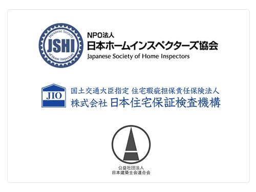 レガシーホームでは、日本インスペクターズ協会(JSHI)、日本建築士会連合会や日本住宅保証検査機構(JIO)などの各団体の協会や検査機構の登録や資格を有し、その診断項目の調査内容がそれぞれ異なる部分をカバーし最良な検査項目で実施できるよう工夫しております。